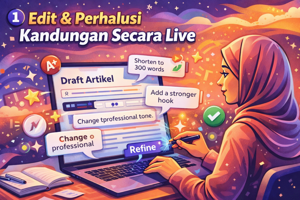 1️⃣ Edit & Perhalusi Kandungan Secara Live