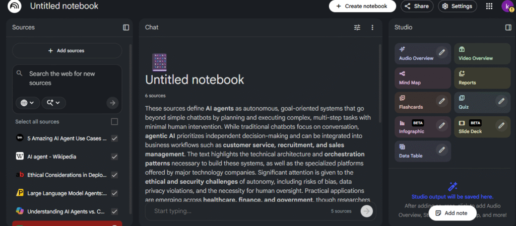 - Pastikan sumber anda sudah dimuat naik dalam NotebookLM.