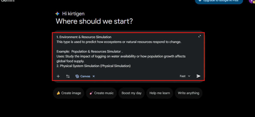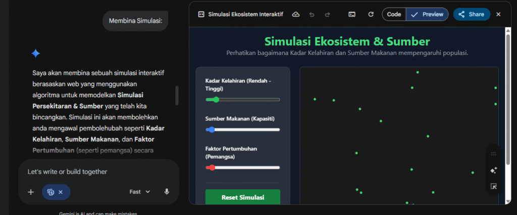 Antara fungsi paling menarik dalam Gemini Canvas ialah membina model dan simulasi dinamik.