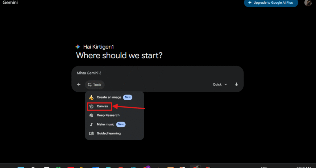 - Buka Gemini dan aktifkan mod Canvas.