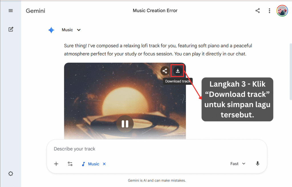 Gemini akan menghasilkan lagu terus berdasarkan arahan tersebut.