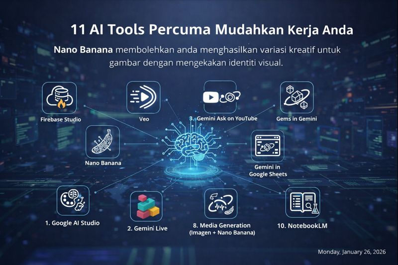 Google kini tawarkan 11 AI tools percuma yang boleh jimatkan masa, mudahkan kerja dan meningkatkan produktiviti anda secara drastik. Google AI tools percuma ini semakin menjadi pilihan utama ramai pengguna digital kerana ia mampu mempercepatkan tugasan harian dan membantu meningkatkan kreativiti. Selain itu, Google AI tools dilengkapi ciri automasi yang memudahkan kerja seharian tanpa perlu sebarang langganan atau kos tambahan.