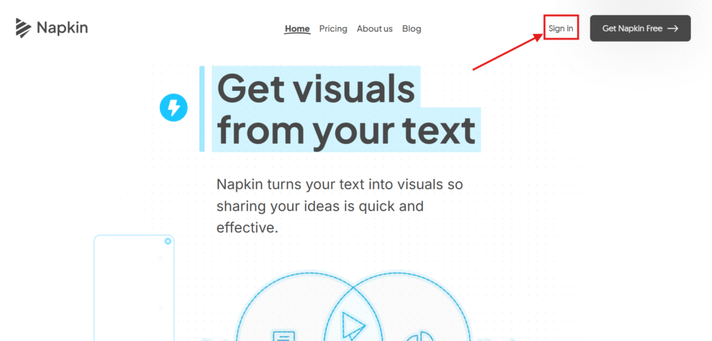 Pergi ke laman Napkin AI dan log masuk akaun anda.