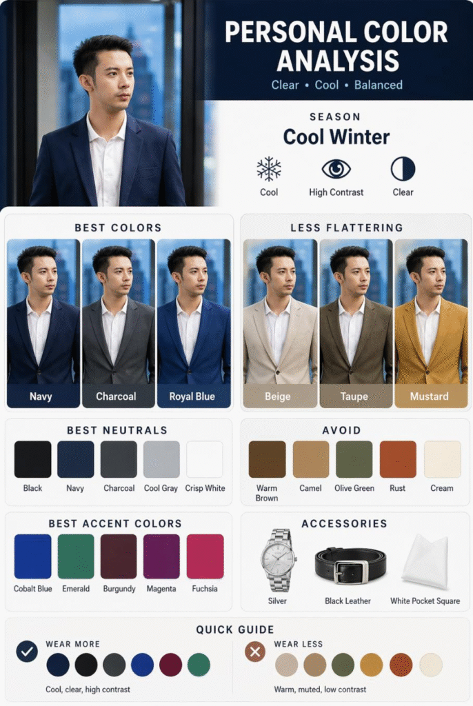 - Cool tone β sesuai warna biru, hitam, kelabu