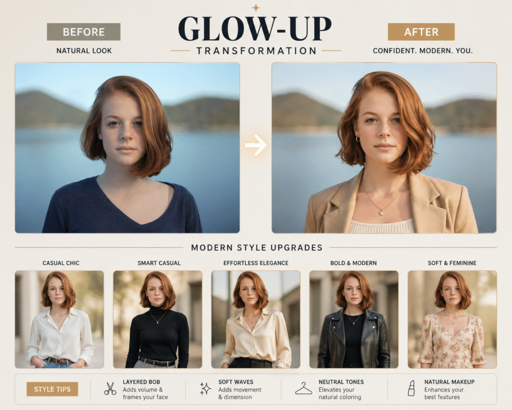 Show the original look vs upgraded fashion styles.