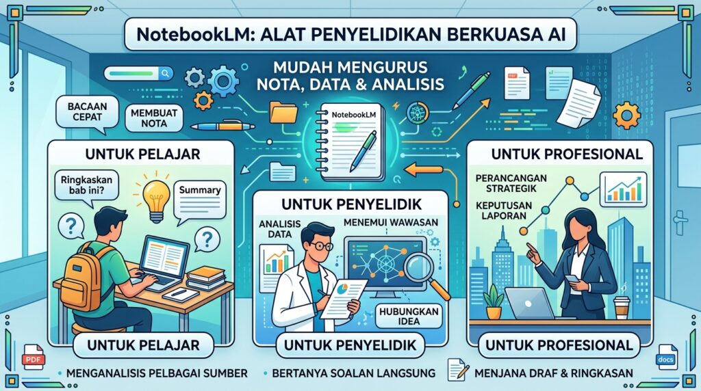 Urus nota, data, dan analisis penyelidikan dengan mudah. NotebookLM sangat berguna untuk pelajar, penyelidik, dan profesional.