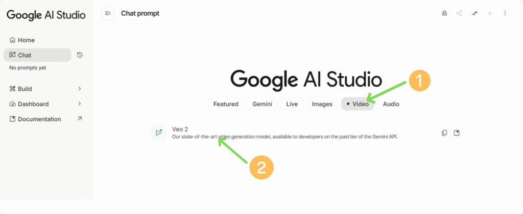 Veo 2 di Google AI Studio menawarkan dua pilihan kepada pengguna untuk menghasilkan video, sama ada melalui mod Teks ke Video atau Gambar ke Video.